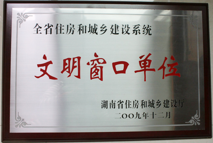 • 2009年12月被湖南省住房和城鄉(xiāng)建設(shè)廳評為“全省住房和城鄉(xiāng)建設(shè)系統(tǒng)文明窗口單位”